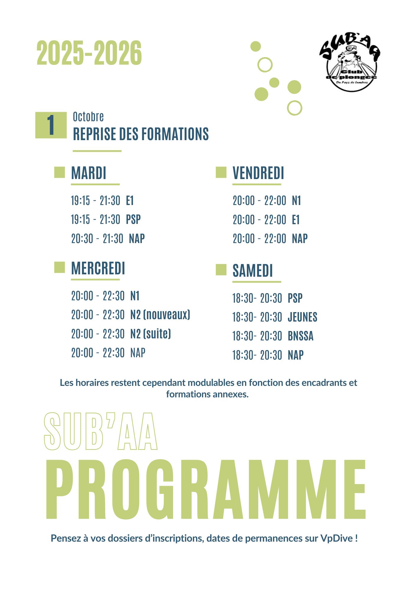 Le 1 octobre, c'est la reprise des formations ! Voici donc le programme de l'année 2025-2026, pour chaque groupe et formations différentes.