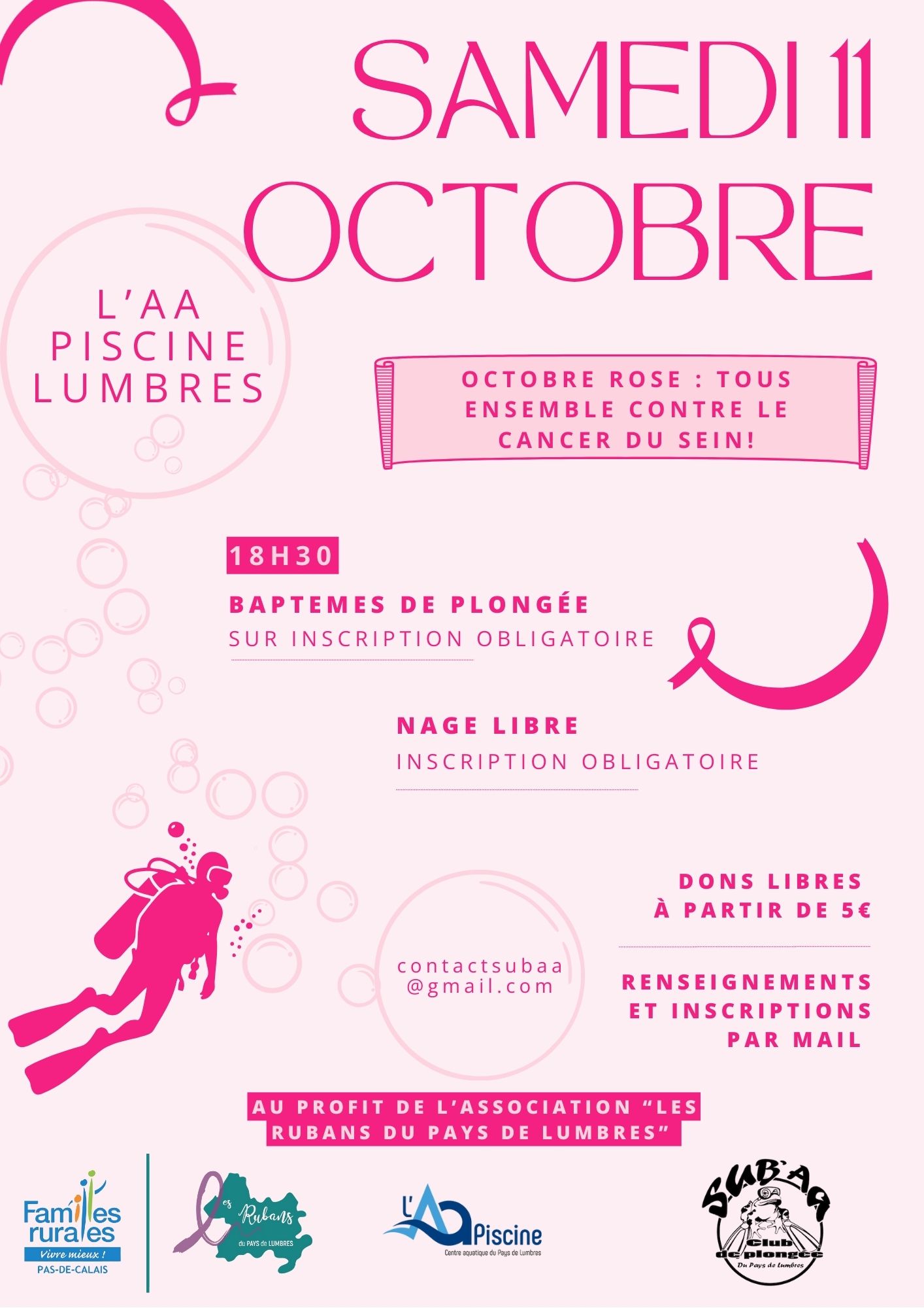 Le 11 octobre, notre club organise des baptêmes de plongée au profit d’Octobre Rose